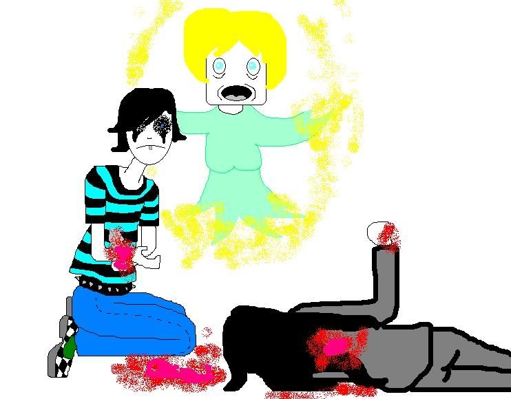 ’De még utoljára.. Ha nem öllek meg, megölelsz?’ kérdezte az emo. S már akkor tudták, hogy ebből ölelésnél több lesz. Mikor a sátánista fejét az emo vállára hajtotta Az a saját tőrével galádul leszúrta. ’Nem tudlak elengedni!’ zokogta az emo és az arcáról vastagon folyt valami trutymó. ’Segáz, ez csak a sminkem, a véred meg a könnyeim.’ Nyugtatta szerelmét ’És most a tőröddel felvágom ereim.’ Mielőtt kilehelték sokat szenvedett lelkeiket Az emo még felírta: KISS KISS BANG BANG
